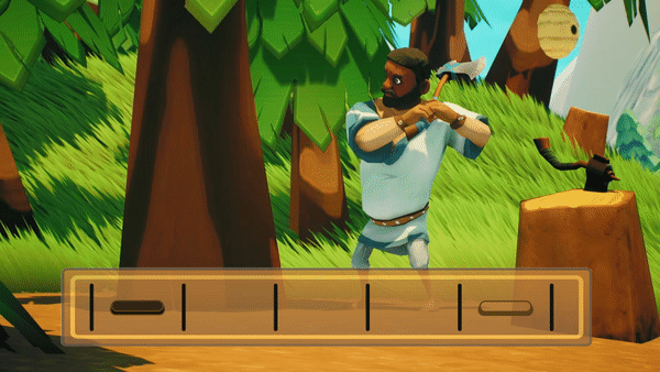 The first step to achieving this was designing minigames for each of the main production buildings. For example, instead of watching their villagers smack trees and collect wood, players can play a wood chopping minigame as a villager that, based on their results, has a tangible effect on production for that villager. This gives players direct contribution to an otherwise automated system through a fun and replayable experience.